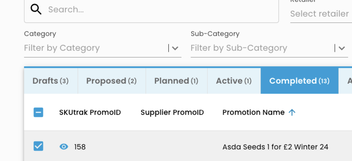 - To export this file, simply click on the individual promotion in the relevant tab and select the tickbox next to the relevant promotion.